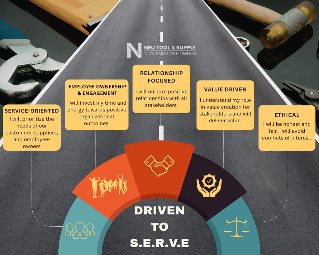 In 2020, Neu Tool & Supply transitioned to a 100% employee-owned company through an Employee Stock Ownership Plan (ESOP). This milestone reinforced the values the company was built on—accountability, pride in workmanship, and a long-term commitment to customers. Employee ownership ensures that every team member has a direct stake in the company’s success and the service delivered each day.